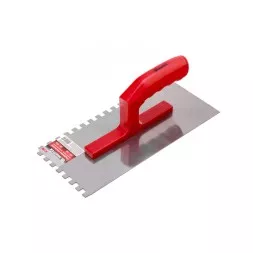 Гладилка стальная, 280 х 130 мм, зеркальная полировка, пластмас. ручка, зуб 6 х 6 мм